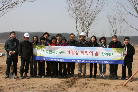 한국법제연구원은 지난 4월 9일 경기도 여주군 여주읍 단현리 한강살리기 6공구(여주 4지구) 현장에서 청단풍 10그루를 심는 「4대강 희망의 숲」 조성 행사를 가졌다.