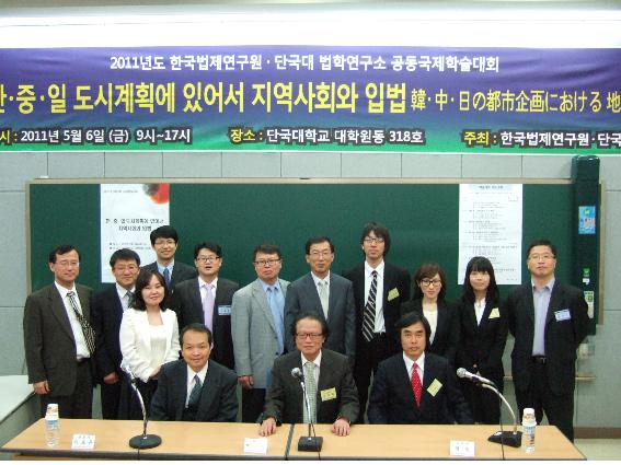 한국법제연구원(원장 김기표)은 지난 5월 6일(금) 9시에 단국대학교 대학원동 회의실(죽전캠퍼스)에서 “한중일 도시계획에 있어서 지역사회와 입법”을 주제로 단국대 법학연구소(소장 정주환)와 공동으로 국제학술세미나를 개최하였다.