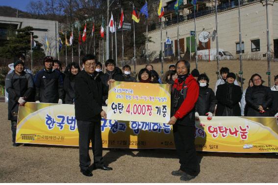 한국법제연구원(원장 김유환)은 성북구 성북동 일원에서 김유환 원장 등 임직원 40여명이 참석한 가운데 저소득층 및 빈곤층 가정에 연탄 4,000장을 전달하는 '사랑의 연탄나눔' 봉사활동을 가졌다.