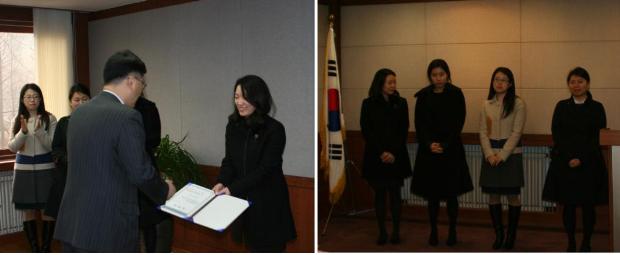 한국법제연구원은 미국변호사 2명을 포함한 J.D.(Juris Doctor) 4명을 신규입사자로 선발하여 지난 2012년 1월 2일(화) 임명장을 수여하였다.