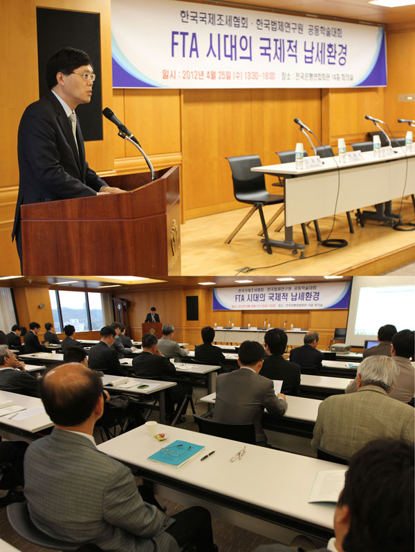 한국법제연구원(원장 김유환)은 4월 25일(수) 'FTA시대의 국제적 납세환경'을 주제로 한국국제조세협회(회장 옥무석)와 공동학술대회를 개최하였다.