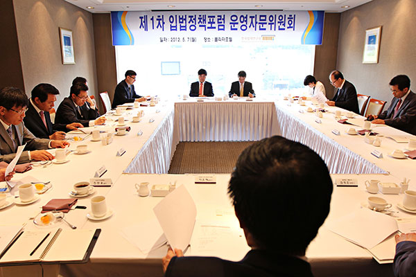5월 7일 오전, 플라자호텔에서 제1차 입법정책포럼 운영자문위원회가 열렸다. 포럼참가자 중 정부관계자 및 법조계, 학계 인사 15인으로 구성된 자문위원단이 모여 한국법제연구원에서 3월에 발족한 입법정책포럼에 대한 리뷰시간을 가졌다. 포럼 개선점으로 플로어 질의응답 시간 확대와 발제자, 주제 추천등 포럼 발전방향을 위한 다양한 의견들이 쏟아졌다. 한국법제연구원은 향후 지속적인 운영자문위원회를 거쳐 효율적인 포럼운영을 위한 기반을 마련할 계획이다.