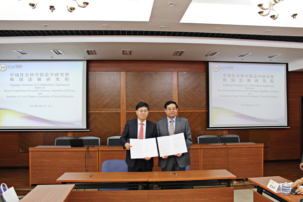 한국법제연구원(원장 김유환)은 5월 15일(화) 중국사회과학원 법학연구소와 상호협력을 위한 양해각서(MOU)를 체결했다.