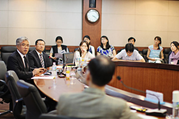 한국법제연구원은 22일 연구원 대회의실에서 홍콩시립대 로스쿨 Wang Guiguo원장을 초청하여 ‘현대국제경제법의 특징과 전망’을 주제로 전문가 포럼을 개최했다. Wang Guiguo원장은 시장의 글로벌화에 따라 제기되는 법적 이슈들을 분석하고, 그로 인해 요구되는 국제경제법의 변화에 대해 전망하였다.