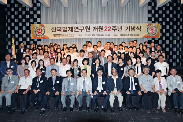 한국법제연구원은 지난 27일(금) 엘타워 매리골드홀에서 역대원장을 비롯한 연구원 임직원 150여명이 함께한 가운데 개원 22주년을 기념식을 가졌다. 이날 참석한 백남진 제3대 원장, 박송규 제4대 원장, 김기표 제9대 원장, 오준근 중앙행정심판위원회 위원장, 조정찬 법령정보관리원 원장, 김인제 법연동우회 부회장은 축사로 기념식을 빛내주었다. 이날 기념식에서 5년 단위의 장기근속자 14명에 대한 표창도 있었다.