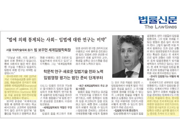 한국법제연구원 개원 22주년 기념 국제학술대회를 하루 앞둔 22일, 학술대회에 참석하기 위해 방한한 세계입법학회(International Association of Legislation, IAL)의 빔 보우먼(Wim Voermans) 회장을 서울 삼성동 인터컨티넨탈 코엑스 호텔에서 만났다.