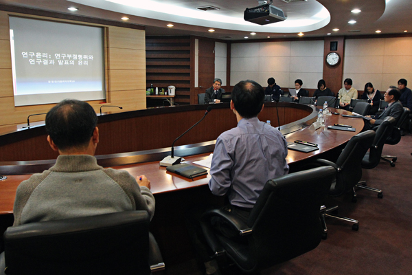 한국법제연구원은 26일 한국법제연구원 대회의실에서 원내 연구직들이 참석한 가운데 연구윤리교육을 실시하였다.