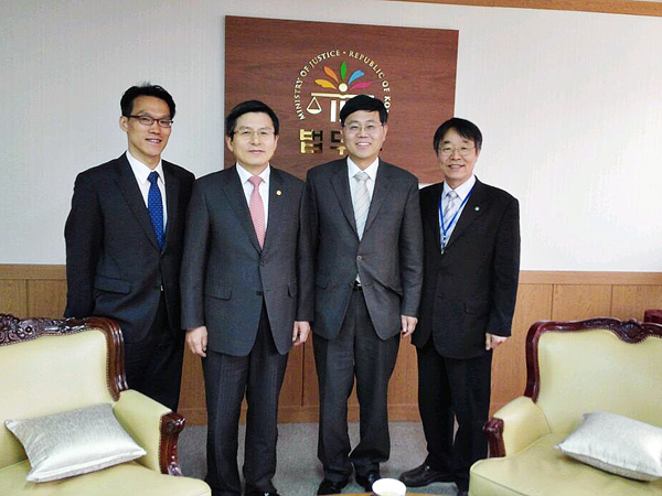 한국법제연구원 김유환 원장과 전재경 연구본부장은 4월 15일(월) 정부과천청사 법무부에서 황교안 법무부장관을 만나 회담을 가졌다.