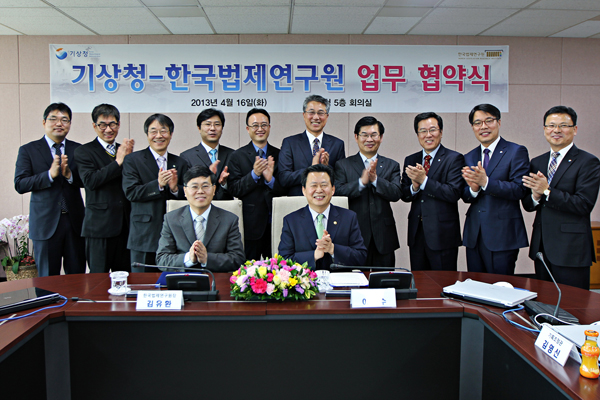 한국법제연구원과 기상청(청장 이일수)은 지난 16일 기후변화에 효과적으로 대응하는 선진 기상,기후법제 마련을 위해 기상청에서 업무협약을 체결하였다.