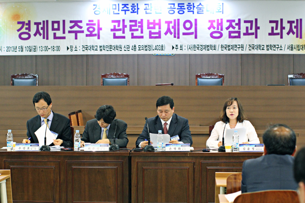 한국법제연구원은 10일(금)에 건국대학교 로스쿨 모의법정에서 “경제민주화 관련법제의 쟁점과 과제”를 주제로 한국경제법학회, 건국대 법학연구소, 서울시립대 법학연구소와 공동학술대회를 개최했다.