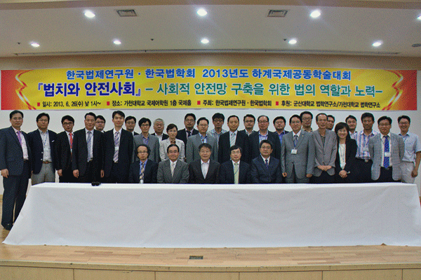 학술대회는 5가지 세부주제인 ▲법치주의 확립과 공법(손형섭 경성대학교 교수) ▲안전사회 구현과 형법(마쯔바라 히사토시 일본 동지사대학 법학부 교수) ▲사회안전망 실현을 위한 산재보험법의 대응 과제(이경희 한국법제연구원 전문연구원) ▲경제민주화와 사법(션 웨이싱 중국 청화대학교 법대 부학장) ▲위험사회와 위험형사소송법(권오걸 경북대학교 교수)에 대한 발제와 토론이 있었다.