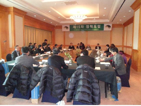 한국법제연구원 김기표 원장은 지난 1월 27일과 28일 양일간 경제인문사회연구회 주최로 열린 『제15차 정책포럼』에 참석하여 “2010년도 사업성과 및 2011년도 사업계획”에 대하여 발표하였다. 이번 정책포럼에는 경제인문사회연구회 소속 23개 연구기관장이 참석하여 연구기관의 “중장기 발전방안”에 대하여 열띤 토론을 펼쳤다.